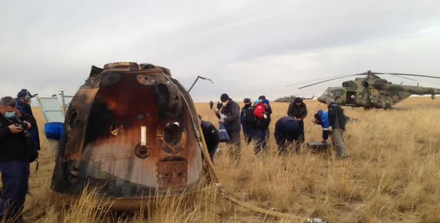 Посадка спускаемого аппарата корабля "Союз МС-16" произошла примерно в 150 км к юго-востоку от казахстанского города Жезказган.