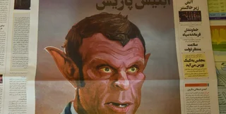 Газета появилась с заголовком "Парижский иблис", так в исламе называют дьявола. Под ним расположили портрет французского президента с заостренными длинными ушами, красноватой кожей и приоткрытым ртом с клыками.