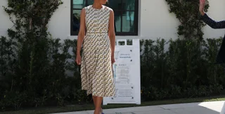 Проголосовать миссис президент приехала около 10 утра по местному времени. Она была облачена в белое платье с узором из золотых цепочек, солнцезащитные очки и туфли-лодочки. Ее сопровождали охранники.
