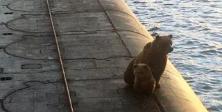 В России пристрелили медведицу с медвежонком, забравшихся на подводную лодку