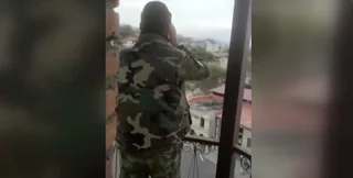Кадры с призывом были сняты одним из участников событий и быстро разлетелись соцсетях. Как видно на ролике, рядом с военным на балконе минарета водружен флаг Азербайджана.