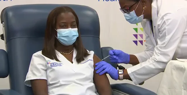 Медсестра интенсивной терапии в Лонг-Айленде, штат Нью-Йорк, была первой, кому сделали укол.
