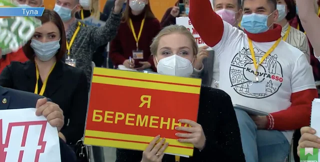 На пресс-конференции президента РФ Владимира Путина директор издания "МК в Рязани" Александра Безукладова Александра Безукладова держала табличку "я беременна", чтобы ее заметили. Об этом сообщает ТАСС.