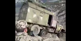 Азербайджанские военнослужащие сбросили с обрыва захваченную у армии НКР передвижную радиолокационную станцию П-15 "Тропа".