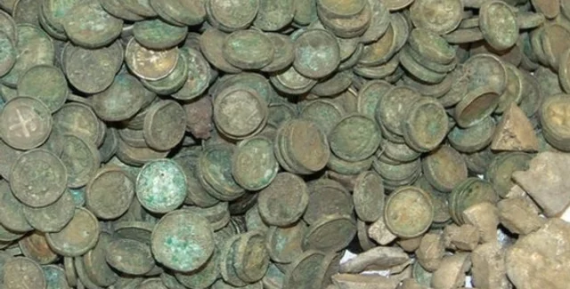 Через два дня поисковики нашли наполненный динариями горшок. Среди монет они обнаружили два золотых обручальных кольца.