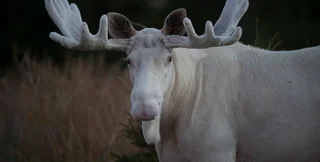 Белизна лося не связана с альбинизмом, а скорее является результатом рецессивного гена, который заставляет расти мех белым, но с коричневыми пятнами. Таких животных называют пегими, но животное с целиком белой шерстью встретить почти невозможно.