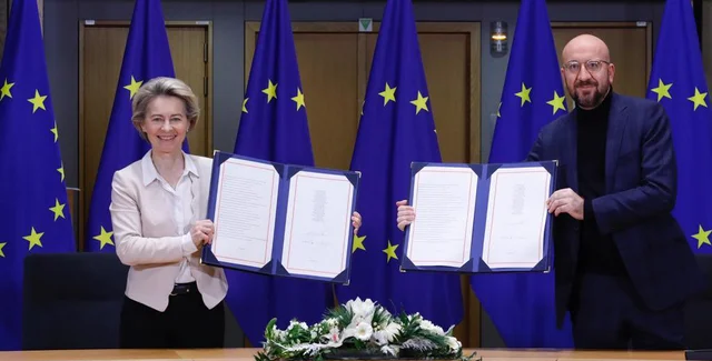 Глава Европейской комиссии Урсула фон дер Ляйен и глава Европейского совета Шарль Мишель подписали соглашение о торговле и сотрудничестве с Великобританией. Об этом говорится в заявляении Евросовета.