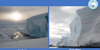 "Опытные полярники говорят, что в этом районе откол такого масштаба произошел впервые. Высота отколовшейся части составляет около 20 метров, это почти как 7-этажный дом. Ширина — 5 м", — сказано в сообщении.