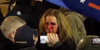 Еще одно видео драки между поклонниками Трампа и правоохранителями опубликовало издание РИА Новости. В конце ролика видно женщину с окровавленным носом.