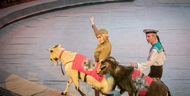 Российское издание Baza передало слова директора Удмуртского цирка, рассказавшего, что свастика, которой "пометили" животных, была "частью исторического шоу". Выступление посвящено роли церкви в истории России, а фрагмент с козлами якобы является аллюзией на битву под Москвой, по итогам которой советские солдаты дали отпор нацистам.