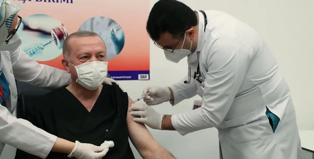 Эрдоган привился препаратом китайского производителя "Sinovac" на второй день после начала массовой вакцинации.
