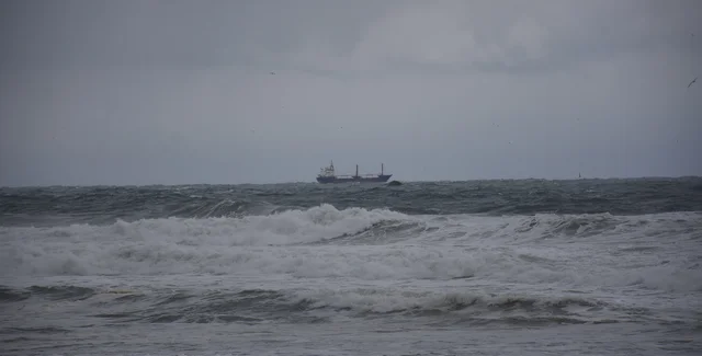 Из-за погодных условий корабль стал на якорь, чтобы переждать, пока волны не "упадут" до 3,4-4 метров.