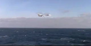 Возле американского эсминца "Дональд Кук" совершил разведывательный полет российский самолет-разведчик Су-24. На опубликованном видео самолет проходит на малой высоте параллельно курсу корабля на небольшом удалении от него. Действие происходит в нейтральных водах.