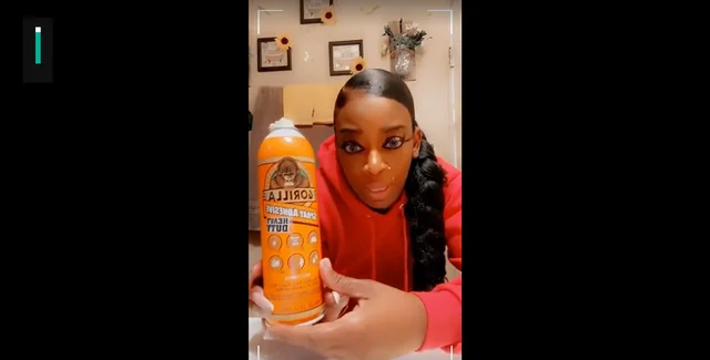 По ее словам, вместо лака с сильной фиксацией Got2b Glue Spray, который она обычно использует, она нанесла на волосы Gorilla Glue Spray.