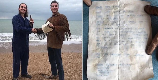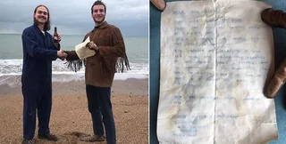 В Восточном Сассексе двое друзей, гуляя по пляжу, нашли послание из прошлого: письмо в бутылке, которое носилось по морю около 60 лет. Об этом пишет Daily Mail.