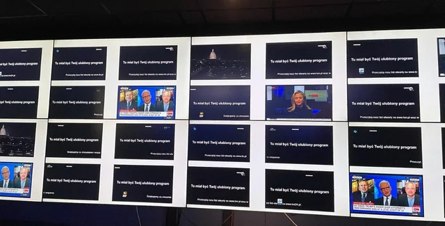Многие телеканалы транслируют заставку с черным экраном и надписью "Здесь должна была быть твоя любимая программа". | Фото: Соцсети