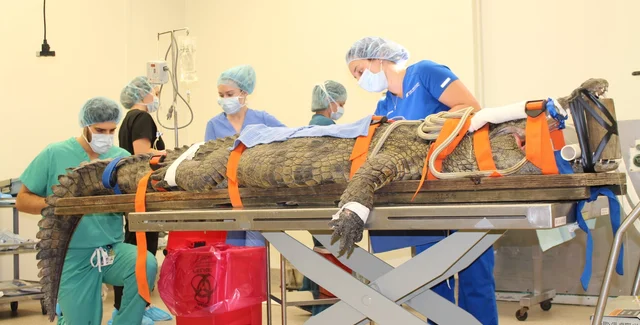 В США несколько часов оперировали крокодила, который съел кроссовок