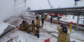 Спасатели МЧС устраняют пожар на газопроводе Союз после взрыва