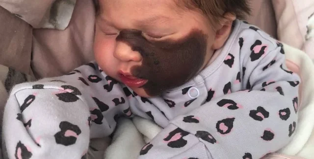 Родители малышки отказались от предложения врачей провести операцию по удалению родимого пятна.