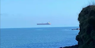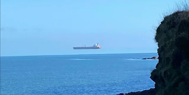 В Англии наблюдали оптическую иллюзию "парящего в воздухе" танкера (фото)