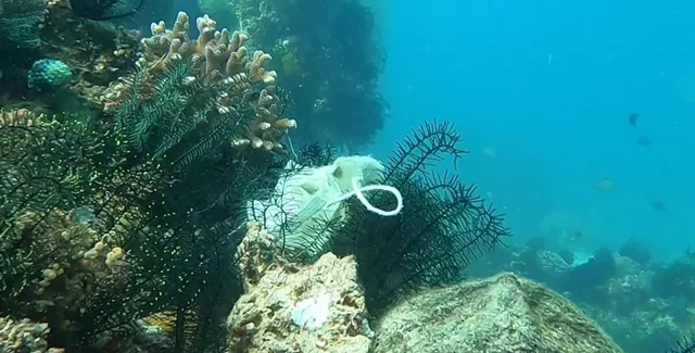 Коралловые рифы поблизости столицы Филиппин Манилы усеяны единоразовыми медицинскими масками, передает ВВС.