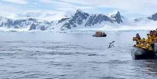 Хищники заметили плывущего поблизости папуасского пингвина и бросились в погоню за ним, маневрируя между туристическими лодками.