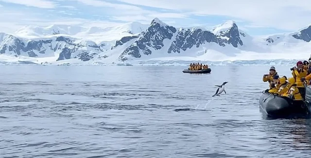 Папуасский пингвин, спасаясь от косаток, запрыгнул в лодку к туристам (видео)