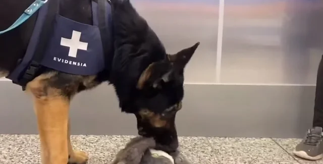 Cобака определяет коронавирус в аэропорту