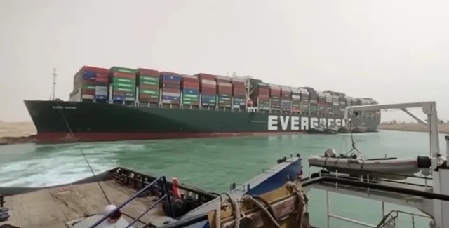 Застрявший в Суэцком канале контейнеровоз продолжает блокировать морскую навигацию.