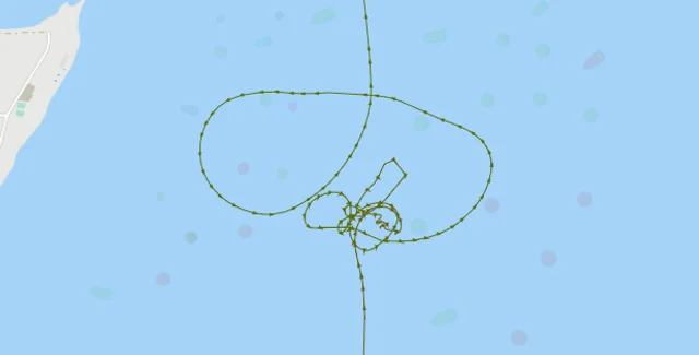 Данные отслеживания судов показывают, что перед заходом в канал судно "нарисовало" необычный узор.