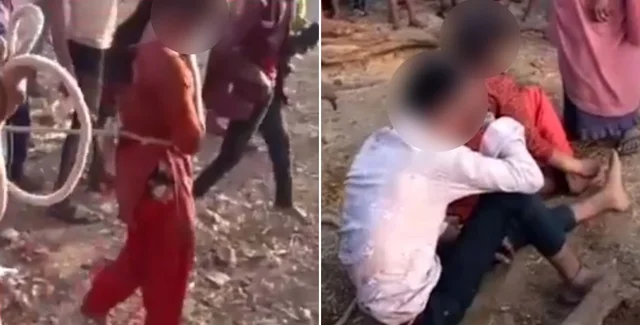 В Индии жертве изнасилования устроили "коридор позора", привязав веревкой к обидчику (видео)