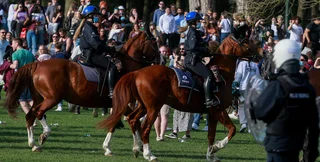 Сотни полицейских в защитном снаряжении, а некоторые верхом на лошадях, разгоняли толпу, применяя водометы и слезоточивый газ.