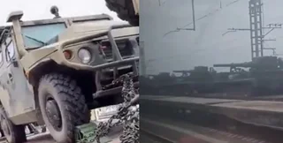 Также в Ростове был замечен состав, на котором был ряд военных грузовиков и бронеавтомобилей "Тигр". С 2005 года стоят на вооружении у армии России. Видео было снято сегодня, 11 апреля. На броневиках отсутствовали номерные знаки, по которым можно было бы установить, к какому военному округу они принадлежат. В составе поезда также заметны военные грузовики.