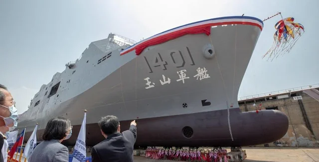 На фоне растущей угрозы вторжения Китая Тайвань спустил на воду первый многоцелевой десантный корабль нового класса "Юй Шань", который способен доставлять войска к его прибрежным районам и островам Южно-Китайского моря.