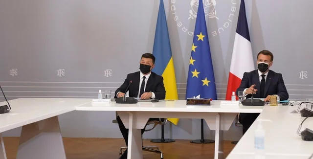 Напомним, с официальным визитом во Францию Зеленский прибыл 16 марта. Зеленский, Макрон и Меркель встречались на фоне роста напряженности на Донбассе, в оккупированном Крыму и в акватории Черного моря. РФ усиливает эскалацию конфликта и стягивает войска к нашим границам.