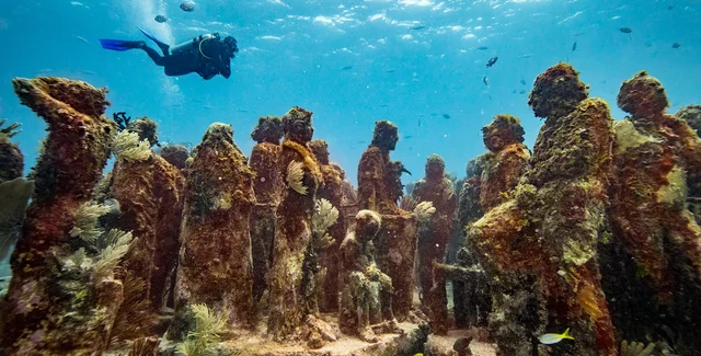 В марте нынешнего года возле острова Сент-Маргерит, расположенного в 1 км от Канн, на глубине трех метров под водой открыли музей истории острова. Экспонаты подготовил британский художник-подводник Джейсон де Кайрес Тейлор. На создание шести скульптур, изображающих местных жителей с масками на лицах, ему понадобилось около четырех лет.