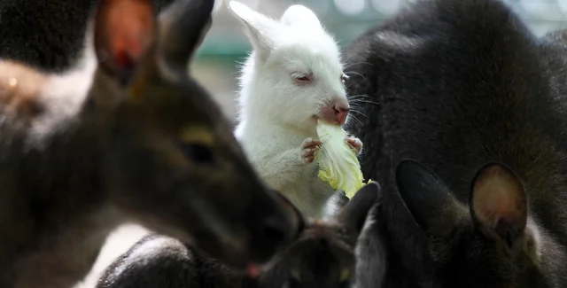 Родители малыша темного окраса, а потому появления белоснежного кенгуренка никто не ожидал