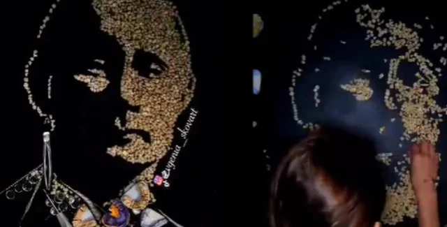 На создание портрета ушло 500 зубов, которыми художницу снабдил местный стоматолог.