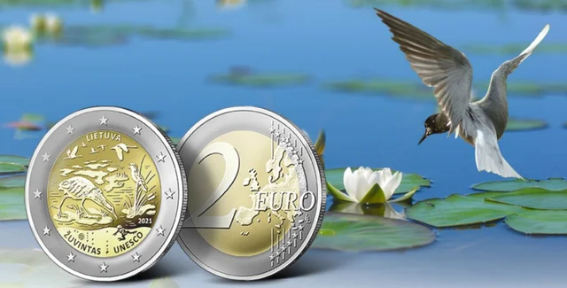 Монета номиналом два евро была посвящена биосферному заповеднику "Жувинтас", который был основан в 1937 году для сохранения редких видов животных.