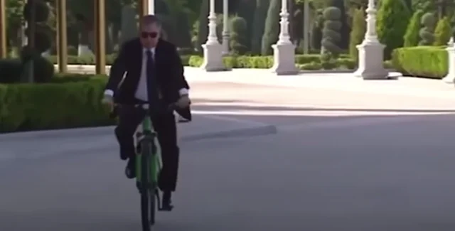 Президент Туркмении Гурбангулы Бердымухамедов, известный своим эпатажным поведением, приехал на велосипеде в президентский дворец. Таким образом глава государства решил отметить Международный день велосипеда, который мир отмечал в четверг, 3 июня.