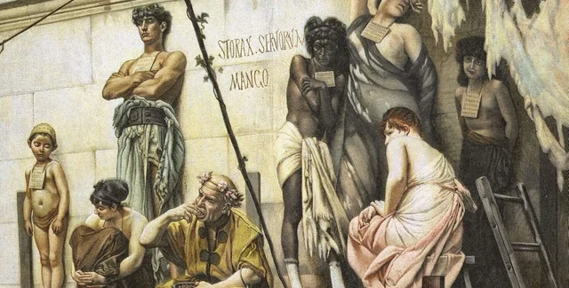 Рабство было обычным делом в Римской империи. Однако останки в кандалах находят крайне редко. Были найдены останки рабов в ошейниках и с металлическими браслетами, которые указывали их принадлежность хозяину. Некоторые из них были обезглавлены. Вероятно, их казнили за воровство, или за попытку бегства.