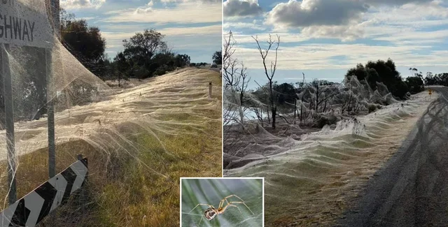 Пугающее зрелище: в Австралии пауки опутали паутиной целый штат