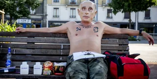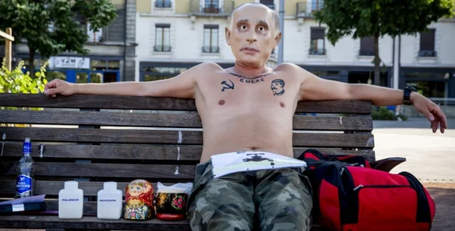 Издание Bliсk сообщило, что ранее в этот же день один из участников антипутинского протеста в Женеве сидел на лавочке в маске президента РФ и набором вещей, который по описанию совпадает с тем, что изъяли у активистов, снимавших фильм для Europa Live. Также на мужчине были "татуировки" с серпом и молотом, лицом Сталина и надписью "Гулаг".