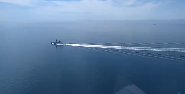 На опубликованных кадрах эсминец Defender виден из окна борта бомбардировщика Су-24М. Однако на них не запечатлен предупредительный огонь.