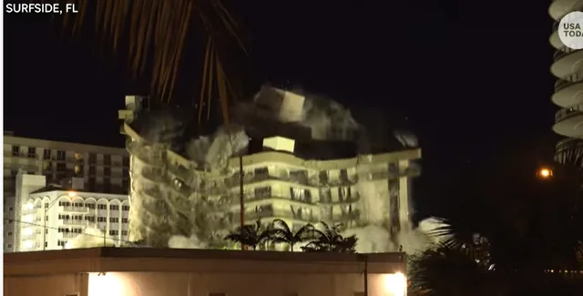 Остатки частично разрушенного жилого дома в пригороде Майами Серфсайде (штат Флорида, США) были снесены около 22:30 по местному времени 4 июня, сообщило ABC News. В этот день в США отмечали День независимости.