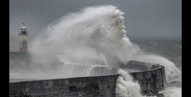 Необычная фотоиллюзия была запечатлена во время прилива воды и ветра более 80 км/ч.