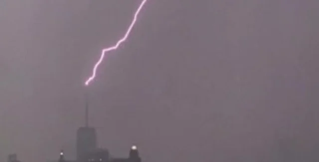 Жительница Нью-Йорка сняла на видео, как тропический шторм Анри бьет молнией в здание Всемирного торгового центра 1 (One World Trade Center). Удар молнии на видео поймала пользовательница Instagram под ником lianvira.