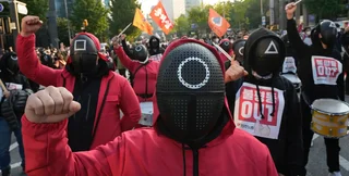 Люди вышли на протест в костюмах из популярного сериала "Игра в кальмара", потому что смысл сериала им очень близок. Руководитель корейского телеканала Channel News Asia заявил, что они, как и персонажи сериала пытаются заработать на жизнь.