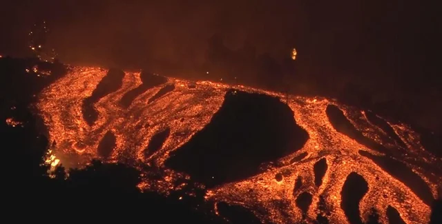 Реки лавы, стекающие по склону холма, достигают ширины почти 3 километров. Одна основная река лавы уже достигла Атлантического океана, а другая остановилась, когда вошла в застроенный прибрежный район.
