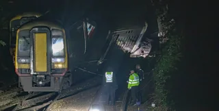 Один из пассажирских поездов в туннеле столкнулся с объектом железнодорожной инфраструктуры и сошел с рельсов, после чего в него врезалось еще один состав. По последним данным, в результате аварии в британском Солсбери пострадали 17 человек, и спасателям пришлось вызволять машиниста, который оказался в ловушке в кабине поезда.